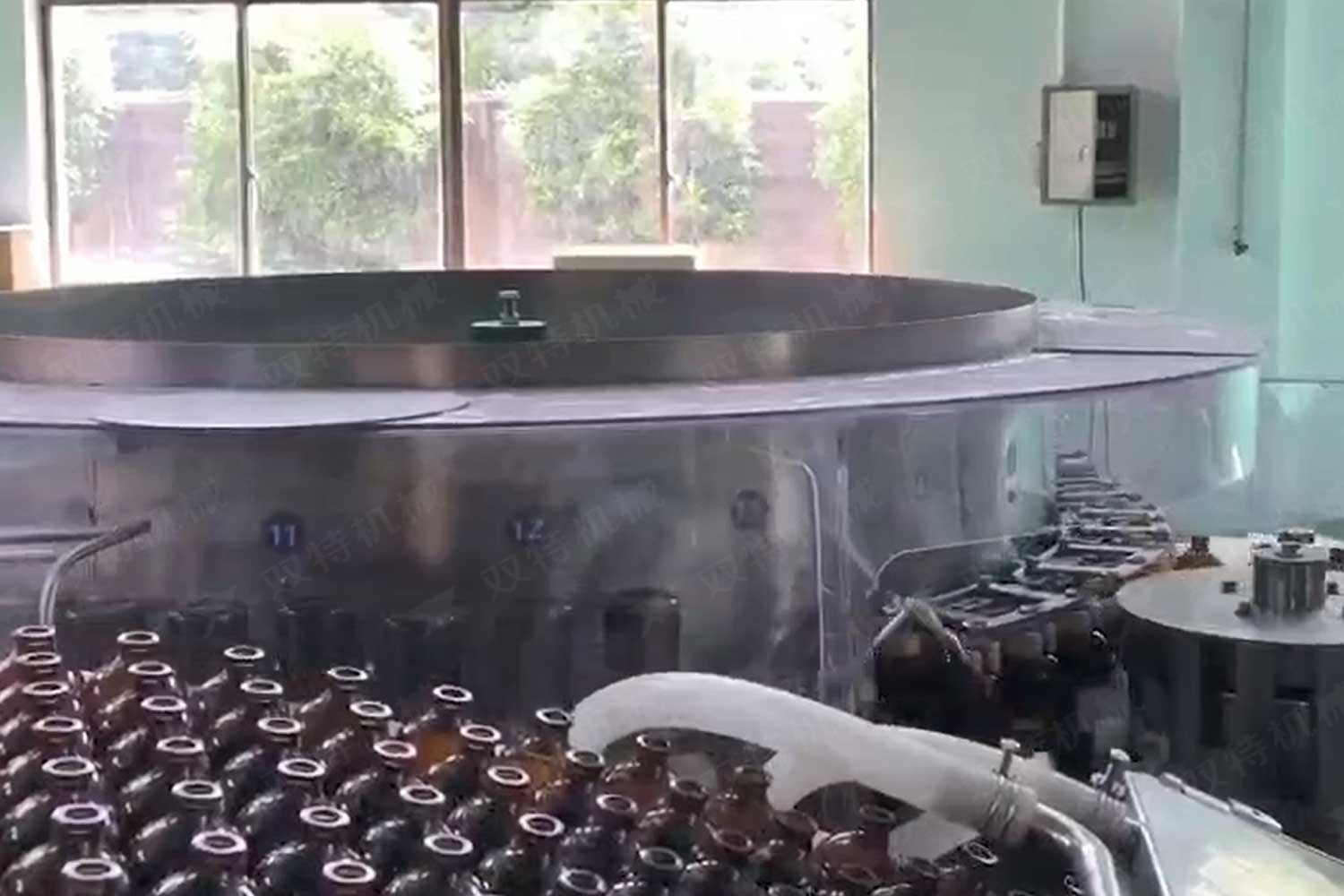 洗瓶機的過程是空瓶進入輸瓶螺桿,由星輪傳動到夾瓶工位,洗瓶的整個過程瓶底均懸空,其優(yōu)點是著力點在瓶頭和頸部,是瓶子厚硬的部分,在清洗過程中不會損傷或壓扁,洗瓶機可調(diào)整多種瓶子,且調(diào)整簡便。